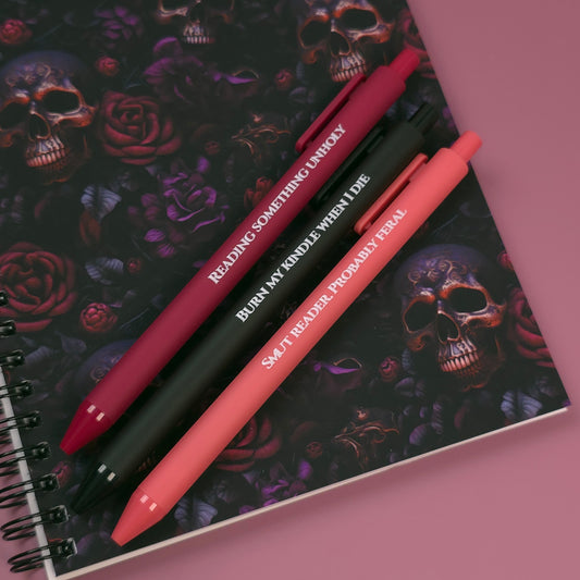 Dark Romance Pen Set | Bookish Gift for Dark Romance Readers | Spicy Book Pens | Colored Ink Pen Trio | Booktok Stationery