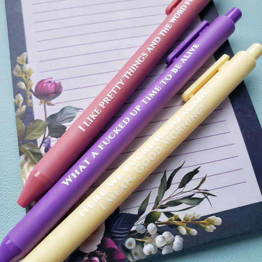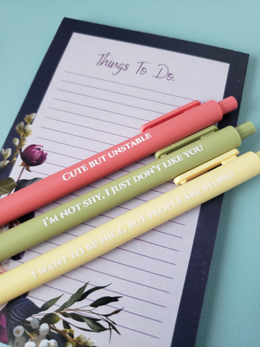 Snarky Pen Set | 3 Sarcastic Pens with Color Ink - Gift For Bestie Cute But Unstable