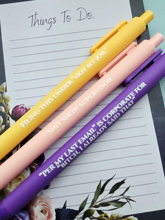 Snarky Office Pen Set | Funny Work Pens | Corporate Humor Gifts | "Not My Job", "Per My Last Email", "Shit Show Supervisor"
