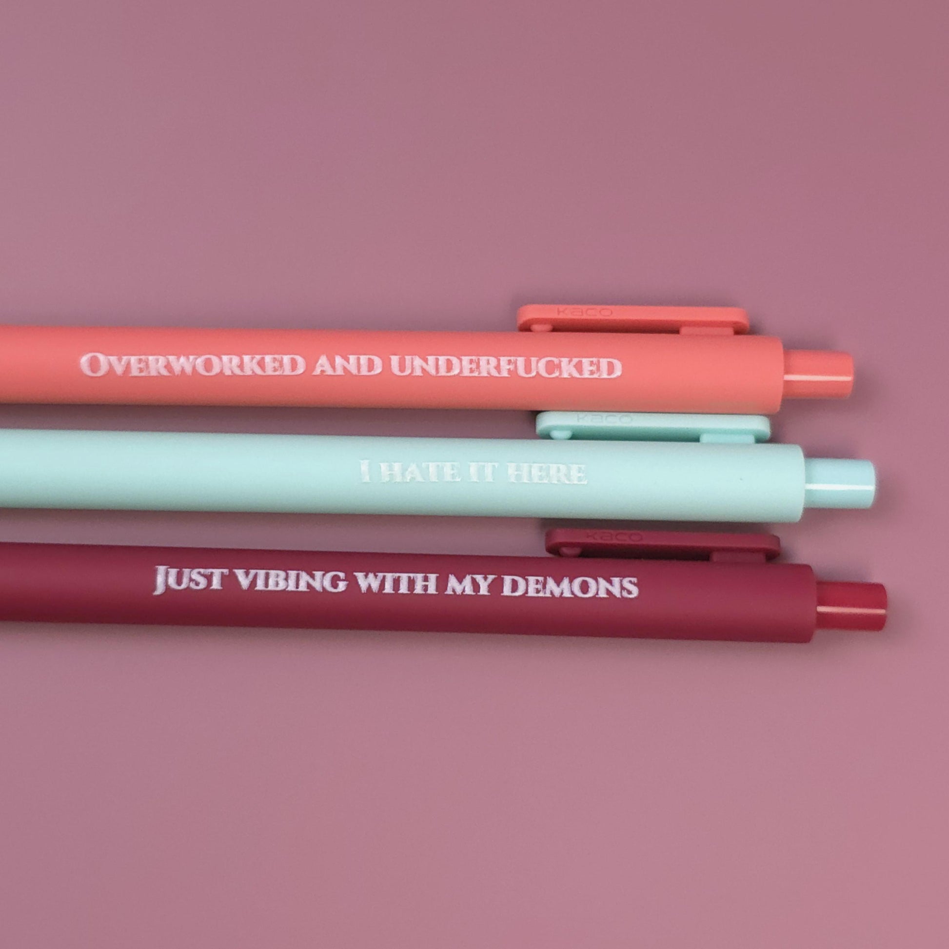 I Hate It Here Pen Set | Funny Sarcastic Pens | Demon Vibes Stationery Gift | Snarky Office Supplies | Mental Health Humor Pen Set