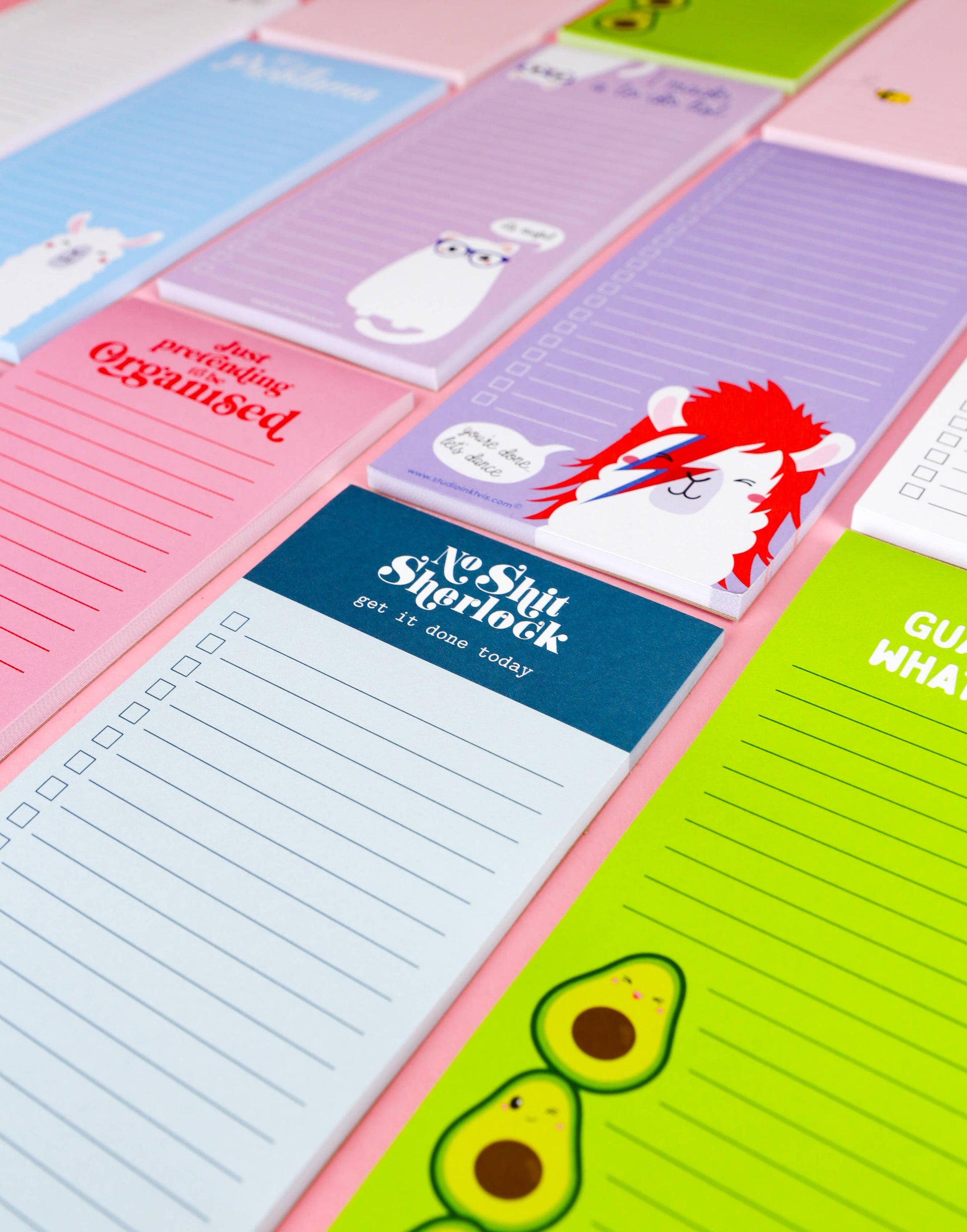 The "No Shit Sherlock, Get It Done Today" notepad from Studio Inktvis is here to deliver the kind of tough love your procrastination needs. Perfect for anyone who responds better to sarcasm than soft motivation, this list pad is equal parts hilarious and helpful.