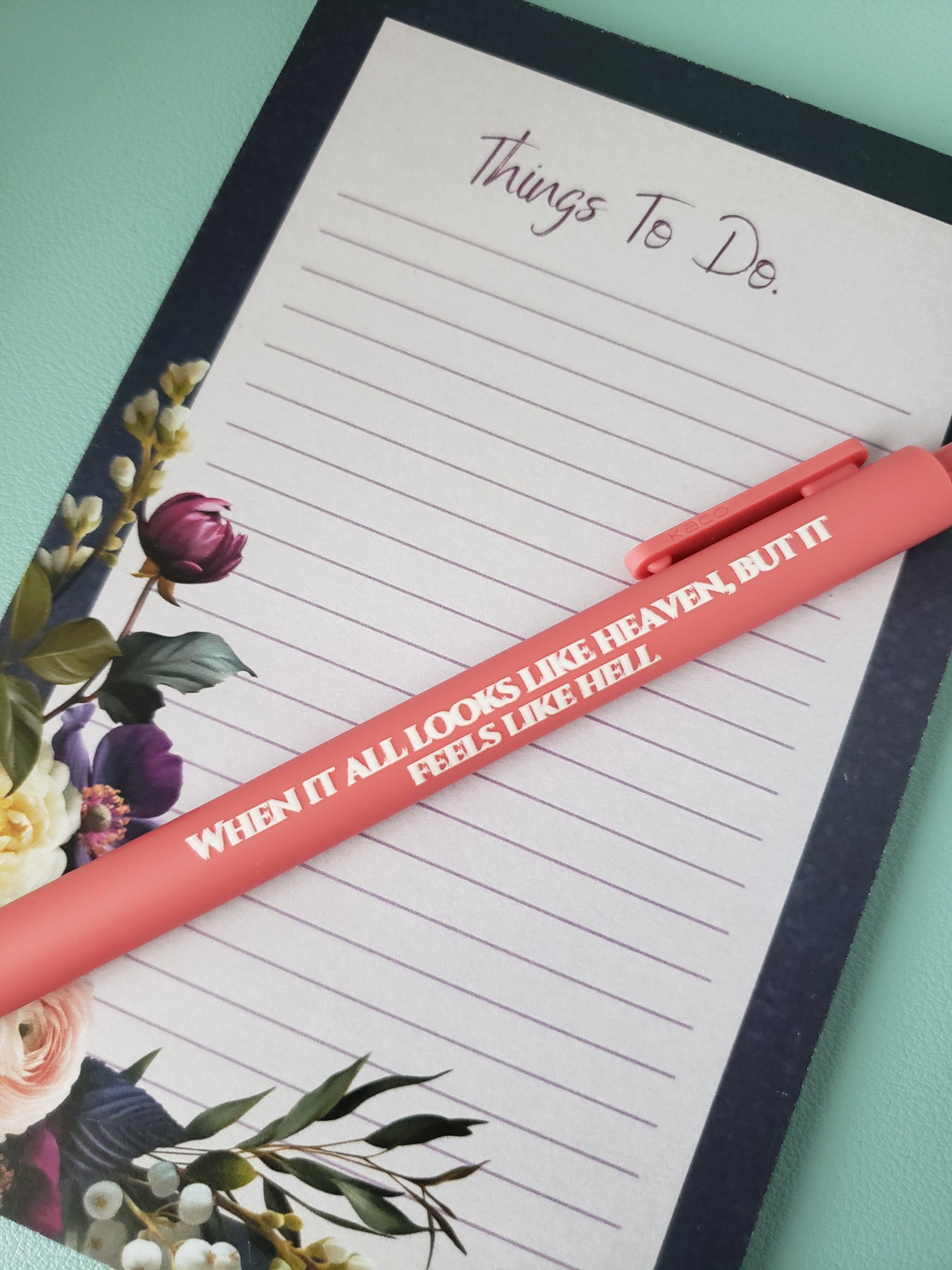 Every Nocturne Nook pen set is brewed right in our cozy little home studio—aka the chaos cave where caffeine flows like magic. We design, assemble, and package each set ourselves, making sure every snarky saying and every bookmark insert brings the exact vibe you're looking for. It's all made with love, sarcasm, and just a sprinkle of F bombs.