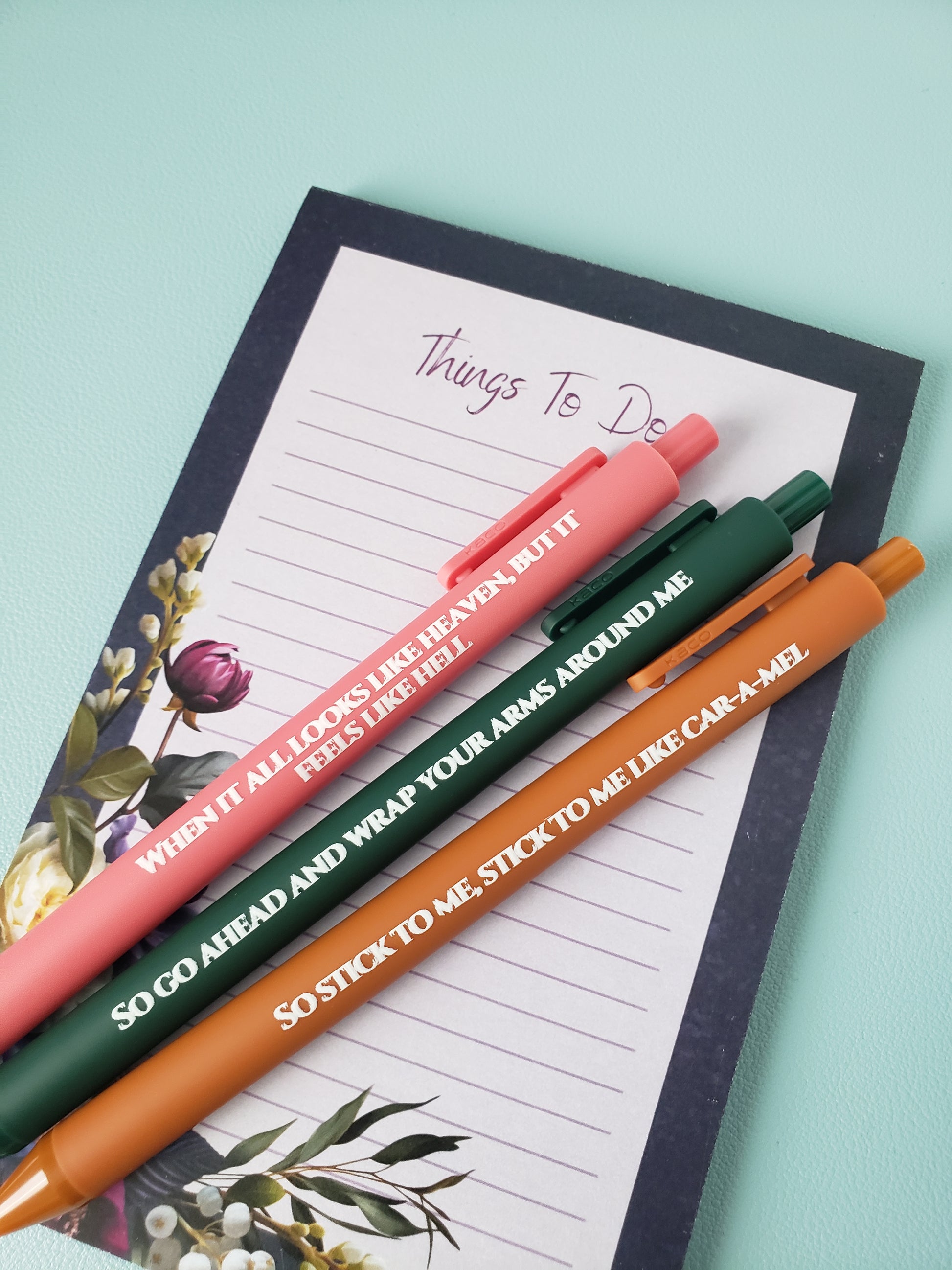 For the ones who worship at the altar, this pen set is your new sacred object. Inspired by EIA, these three pens feature lyrics that hit as hard as V's vocals: